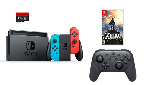 -. Title : Nintendo Switch 4 items Bundle:Nintendo Switch 32GB Console Neon Red and Blue Joy-con,64GB Micro SD Memory Card and an Extra Nintendo Switch Pro Wireless Controller,The Legend of Zelda