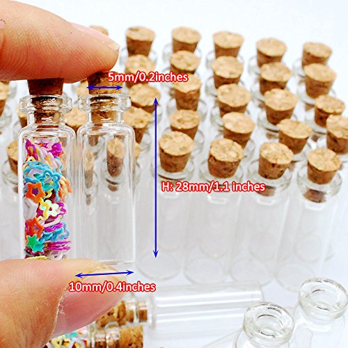 - 50pcs Miniature glass bottles with Corks, it is a tiny bottles, you can check the photos, there is one picture with hand, you can know what size of the bottle. :)