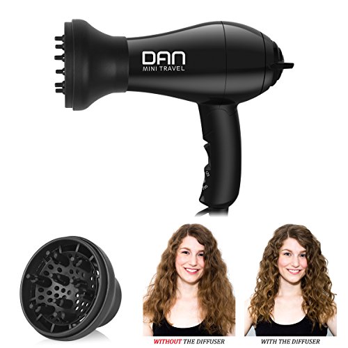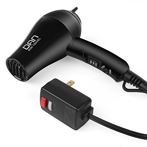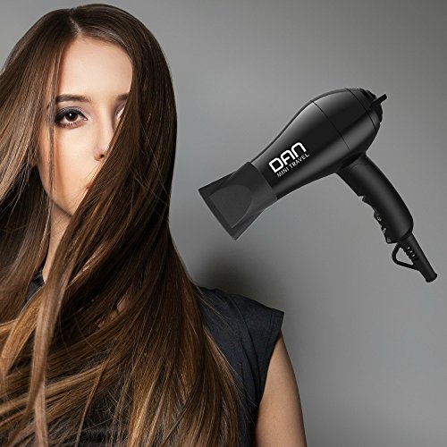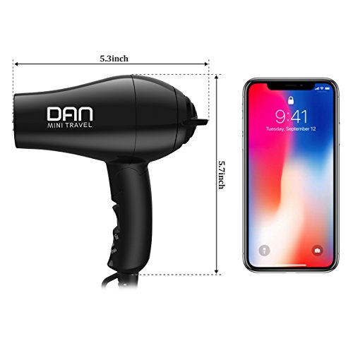 DAN Technology D29 Professional Hair Dryer 1200W, Dual Voltage 125V-250V, Mini Size & Lightweight for Travel, with 2 Styling Nozzles 2 Speeds 2 Heat Settings, ETL Certified (Black)