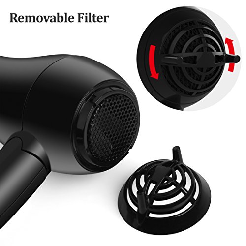 - ✹ CONVENIENT DESIGN – 2 speeding setting, control the speed as you need. Removable lint filter to facilitate the timely clean up. Safety in the back to prevent it from sucking in your hair.
