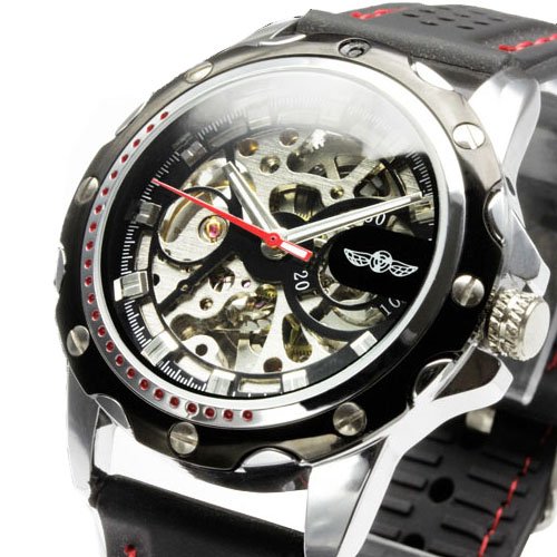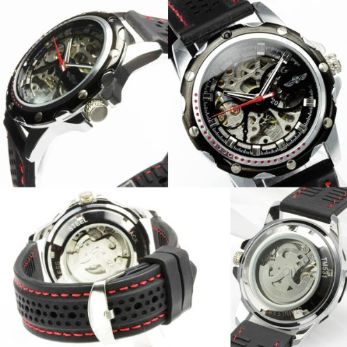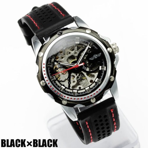 -. Title : 腕時計 メンズ フルスケルトン 自動巻き 腕時計 アナログ ラバーベルト 男性用 機械式腕時計 ブラック/ブラック