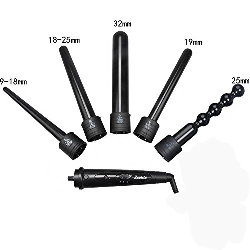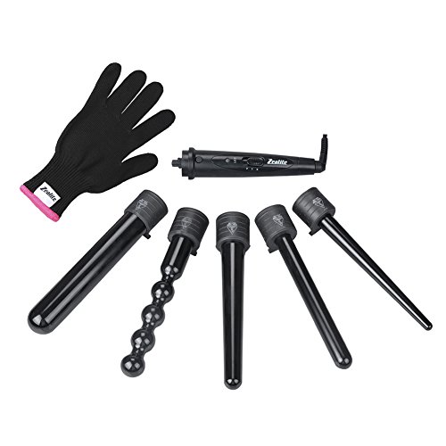 Curling Wand Set, Zealite 5 in 1 Hair Curler Wand Set Interchangeable Curling Iron Barrels with Heat Resistant Glove (Black-II)