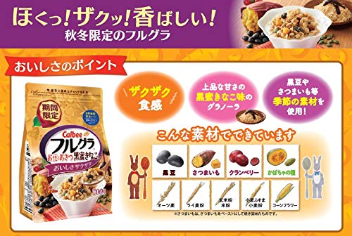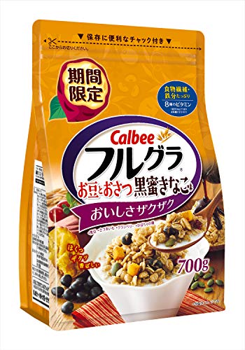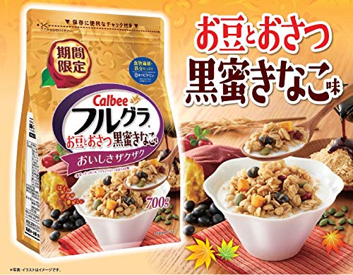コクのある黒蜜きなこ味に焼き上げたグラノーラに、季節の素材お豆とおさつをトッピング。
