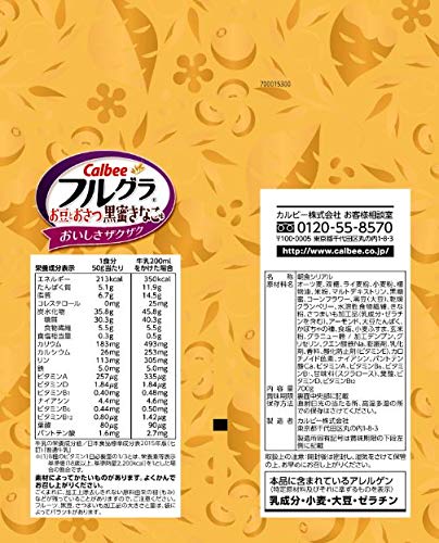 1食50g当たり(エネルギー:213kcal、たんぱく質:5.1g、脂質:6.7g、コレステロール:0mg、炭水化物:35.8g、糖質:30.3g、食物繊維:5.5g、食塩相当量:0.3g、カリウム:183mg、カルシウム:26mg、リン:113mg、鉄:5.0mg、ビタミンA:257μg、ビタミンD:1.84μg、ビタミンB1:0.40mg、ナイアシン:4.4mg、ビタミンB6:0.44mg、ビタミンB12:0.80μg、葉酸:80μg、パントテン酸:1.6mg)