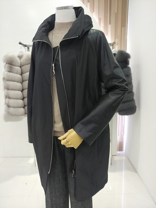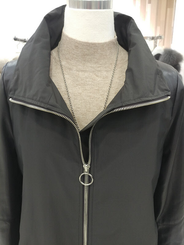 소매와 숄더라인에 양가죽 배색을 하여 고급스러움으로 인해 더욱 우아하게 다가오고