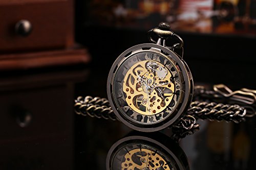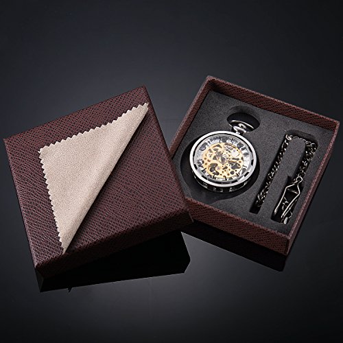 -. Title : SIBOSUN ブランド 無蓋 設計 機械式 懐中時計 チェーン 男性 アンティークギフト ボックス 手巻き / 自動巻き