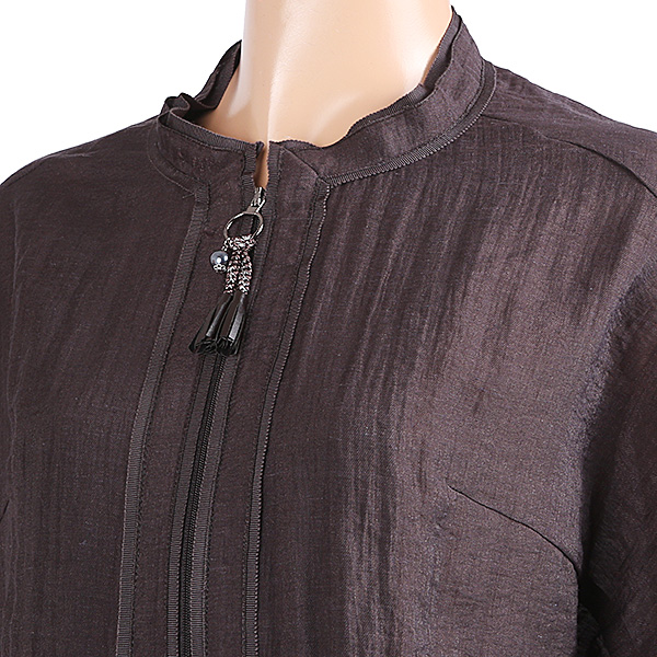 이 제품은 홉겹의 린넨대용의 원단으로 메탈사가 섞인 오버사이즈의 멋스러운 집업재킷입니다