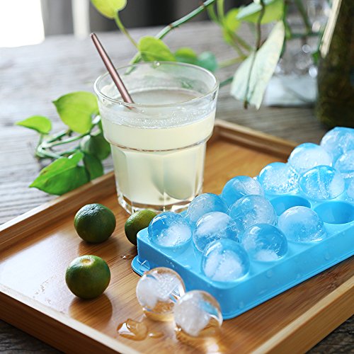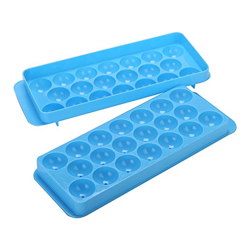 Ice Ball Tray Spheres Ice Cube Mold, Plastic Food-Grade Stackable Round Ice Ball Maker with lid for Cocktail, Whiskey - Set of 2 (Blue & White)