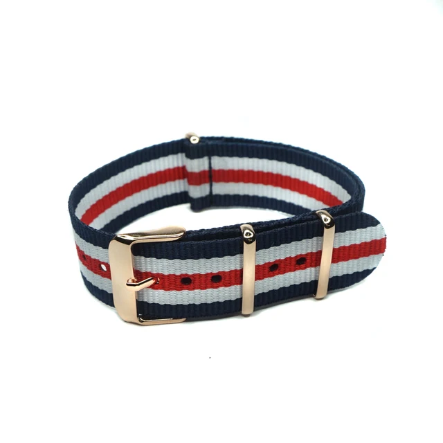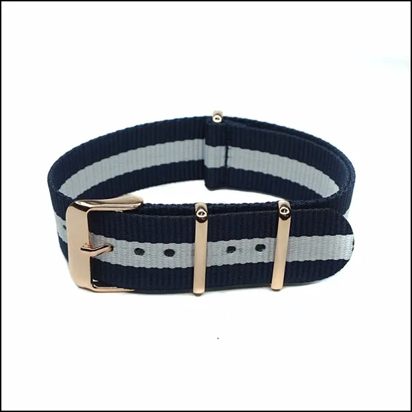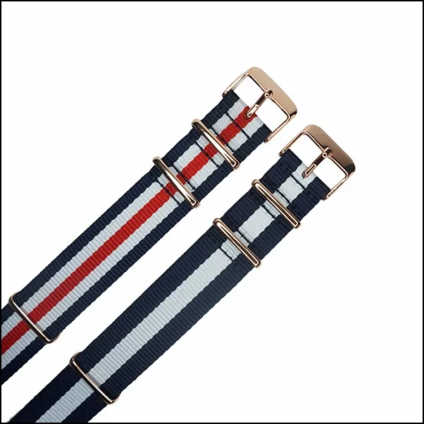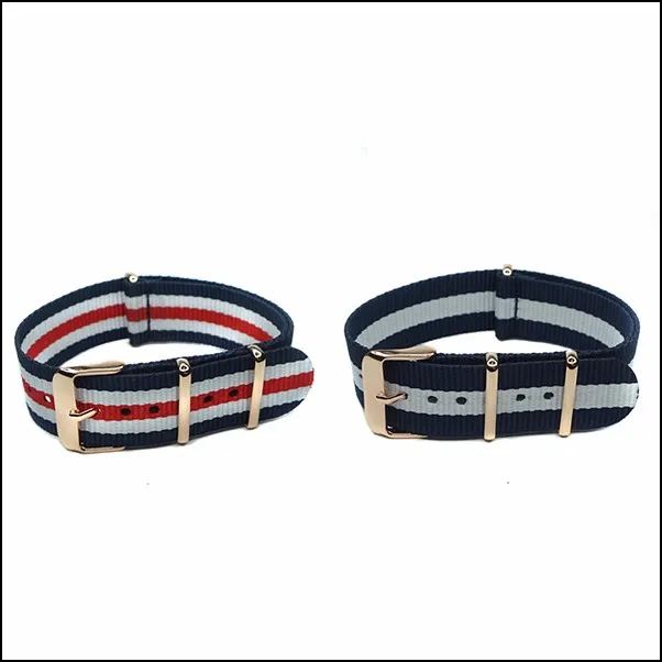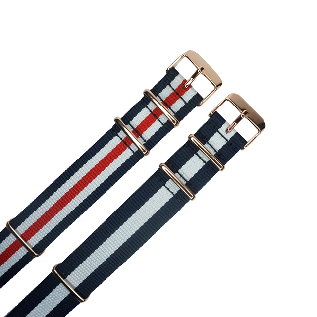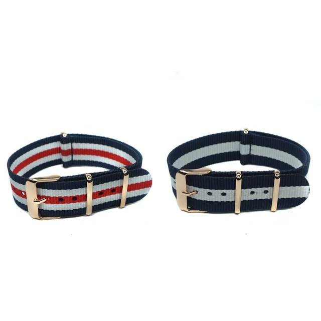 20 미리메터 나일론 시계 Bnad 섬유 스트라이프 스트랩 스테인레스 스틸 버클 시계 남성 여성 다니엘 웰링턴 로즈 골드 버클 |