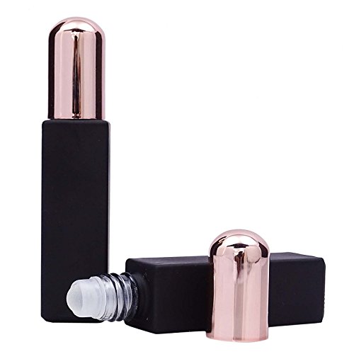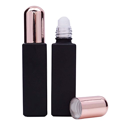 1 Pair x 10ml Empty Black Glass Roll-On Attar Bottles Essential Oil Wholesale Refillable Aromatherapy Perfume Bottles With Rose Gold Cap