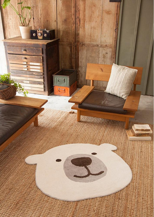 つぶらな瞳の優しい表情が気持ちを穏やかにしてくれそうなクマのフェイスマットです。大きなサイズで可愛らしさアップ。