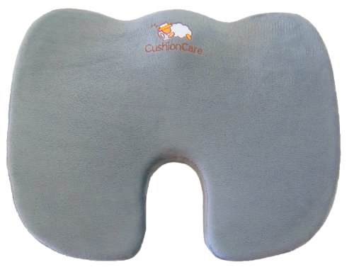 - Title : Coccyx Seat Cushion By CushionCare- Made Out of 100% Memory Foam for Orthopedic Use. Reduces the Pressure on the Spine and Tailbone and Provides Lower Back Pain Relief. Highly Comfortable and Portable. Best Used on Office Chairs, Car and Truck Driving, Wheelchairs, Airplane and Much More. Gray Color Lifetime Guarantee Provided!