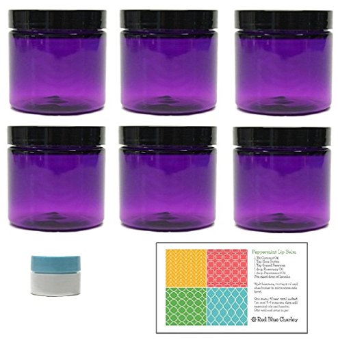 Made in USA. This 6 pack includes 1 white .25 oz mini jar, blue lid and 1 cosmetic recipe card from Red Blue Charley