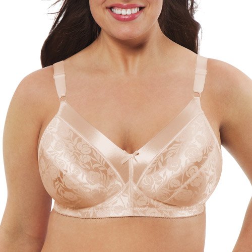 - Feature : Seamed cups offer lift and support without wires. / All-over knit-in stretch provides smooth fit. / Floral pattern covers silky, radiant satin. / Wide non-stretch satin straps adjust in front. / Back design resists ride-up.