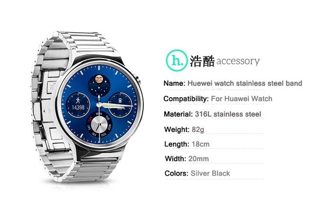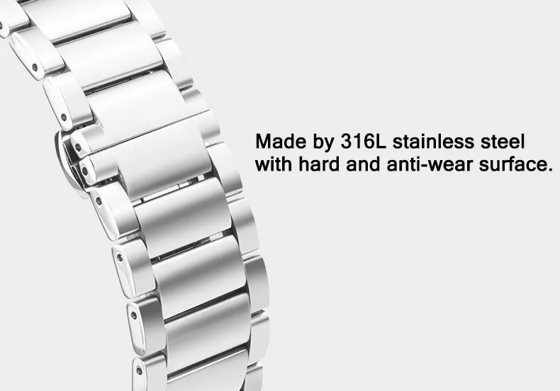 | [해외] 2017 뜨거운 판매 세 포인터 20 미리메터 팔찌 밴드 huawei watchs 만든 316l 스테인레스 스틸 실버 블랙 색상 |