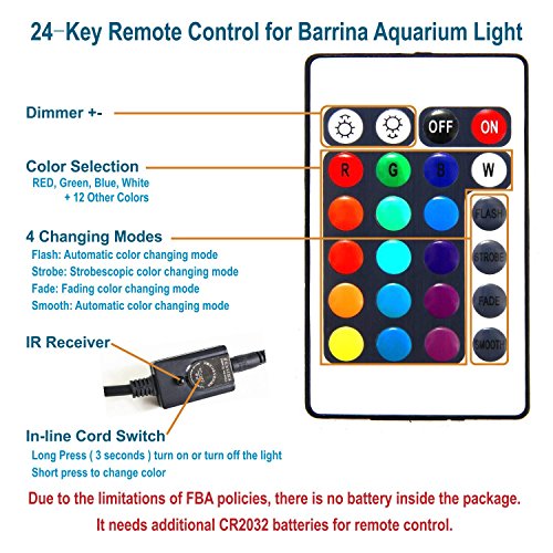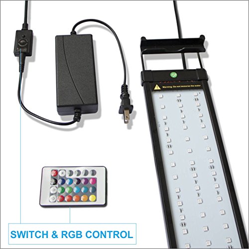 Barrina 48 Inch Aquarium Hood Lighting Color Changing Remote Controlled Dimmable RGB LED Light for Aquarium Fish Tank For Fresh and Salt Water with Extendable Brackets, 45 to 50 Inches 4ft