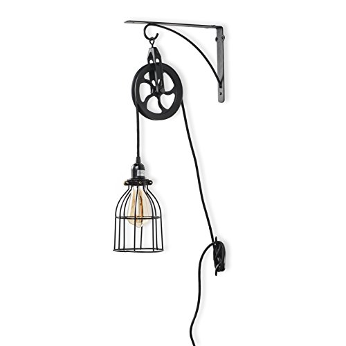Rustic State Industrial Pulley Design Wall Sconces Pendant Lamp with 10 Feet Fabric Cord LED Edison Light Bulb in Black