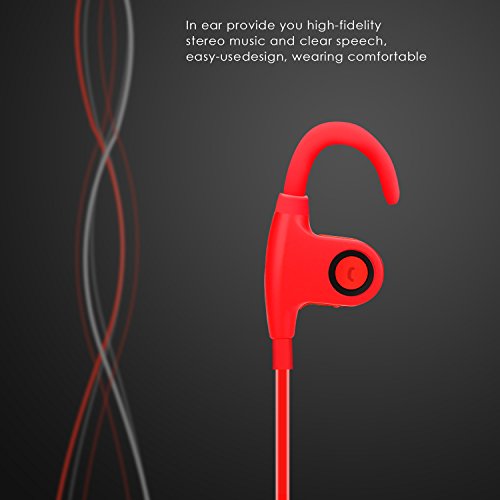 Waterproof Sports Bluetooth Earphone V4.1 , Anweer Mini Stereo Ear-hook Light Bluetooth Earbuds for Gym Exercise Wireless Headphones In Ear Sport Bluetooth Headset Comfortable for Music (red)
