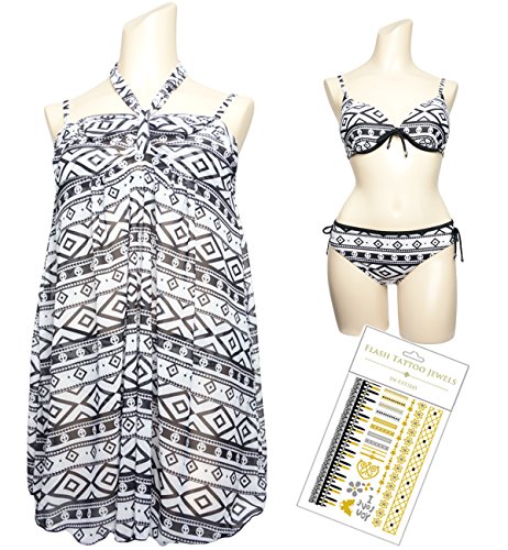 -. Feature : ワンピース: 透け感のある爽やかな素材。リボンを外せばスカートとしても使えます / ビキニ: 大人セクシーなモノトーン&幾何学柄でスッキリしたスタイルに♪ 取外し可能なパッド付き / フラッシュタトゥー:LAセレブ大流行のキラキラ輝くジュエリーシールでリゾート気分全開! / サイズ:M・L・XL(日本サイズS・M・L相当 サイズ詳細はページ下部の説明をご覧ください) / 素材:ポリエステル・ナイロンなど Made in China