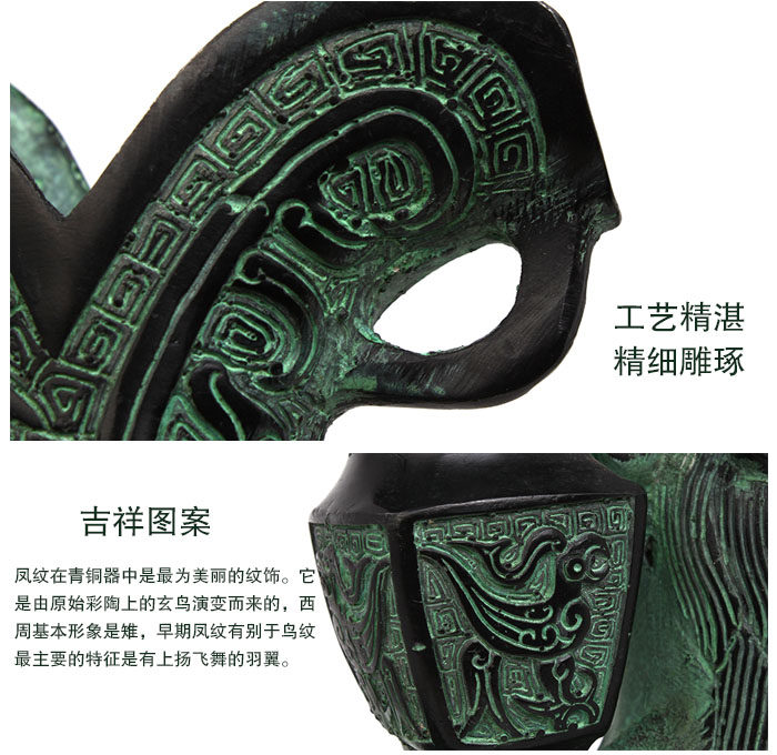 Noble man Jue, is the ancient emperor seal princes, a grant was given tothe recipient. Goblet implies a rise in the official world, rising, is a gift to friends and relatives, to express good wishes of fine crafts. Deep abdominal, round bottom, while the three knife shaped foot. Flow withvertical crown Phoenix, remember the shepherd's father, do. Possession of Shaanxi province is now the Zhou Yuan museum.