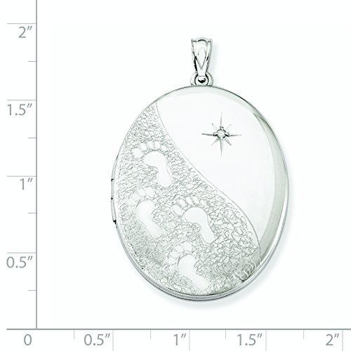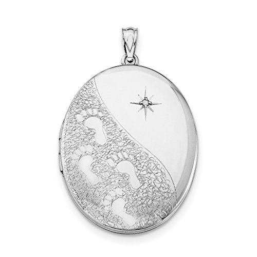 ICECARATS DESIGNER JEWELRY 925 STERLING SILVER DIAMOND FOOTPRINTS 34MM OVAL PHOTO PENDANT CHARM LOCKET CHAIN NECKLACE THAT HOLDS PICTURES