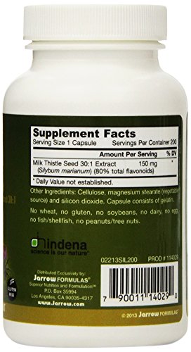 -. Feature : Jarrow Formulas, Milk Thistle, 150 mg, 200 Veggie Caps. Pack of 2 bottles. / A highly concentrated, effective extract of milk thistle / Supplies a Standardized 30:1 Extract Yielding 80% total flavonoids / Demonstrates Liver-Protecting Benefits in Human Studies / Improves Glutathione Levels, the Body's Major Antioxidant