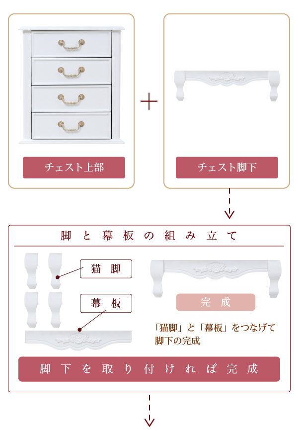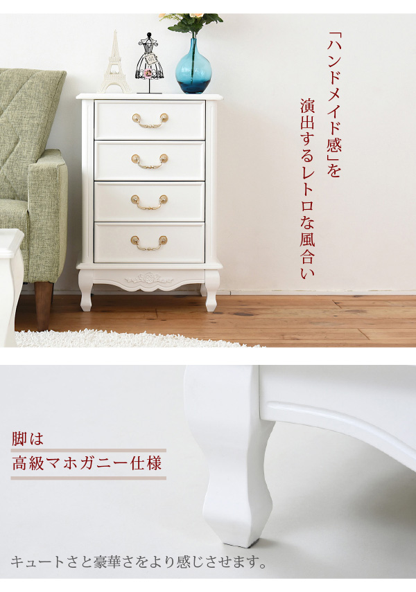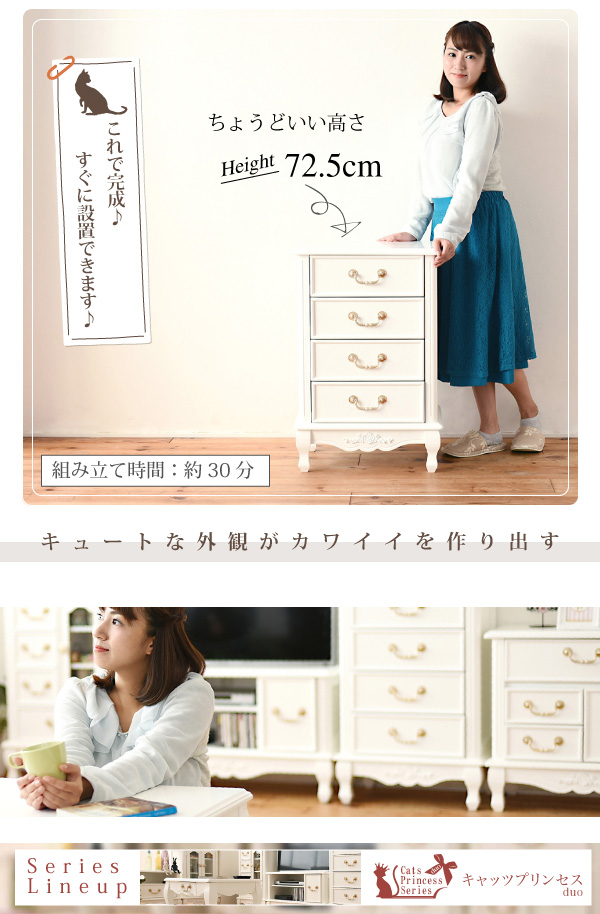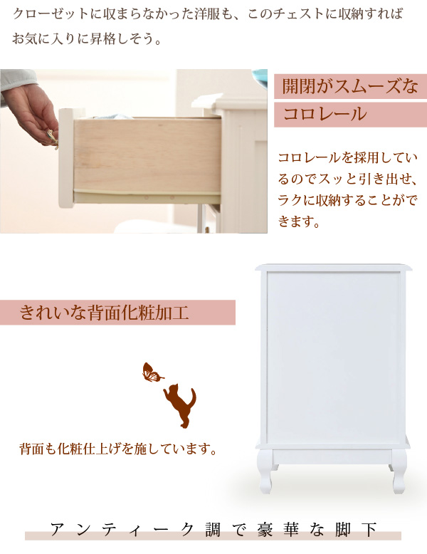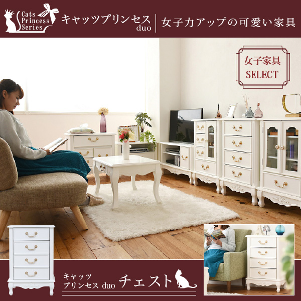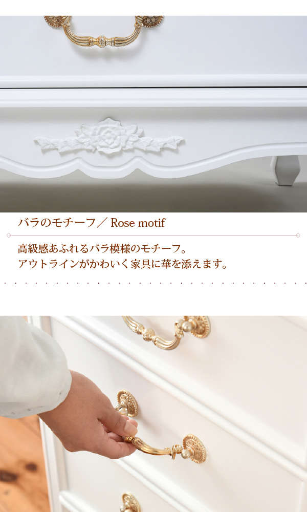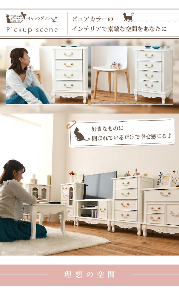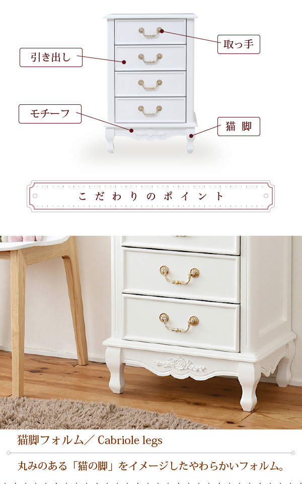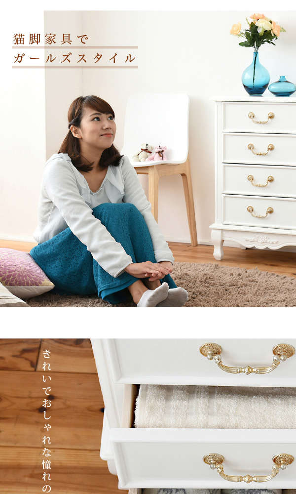 ●薔薇のレリーフ、かわいい猫脚、アンティーク調の取っ手がお姫様な気分を演出するキャッツプリンセスシリーズのチェスト