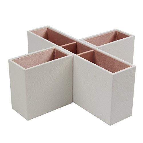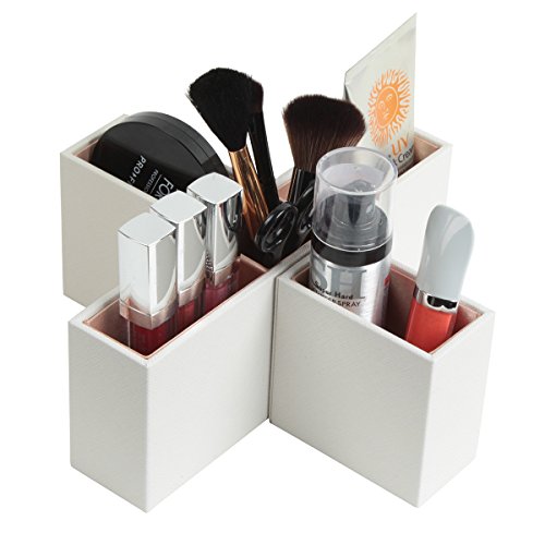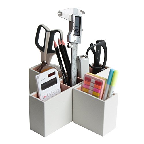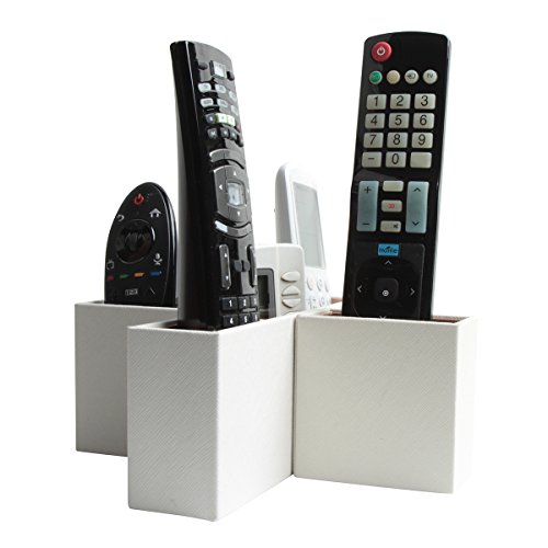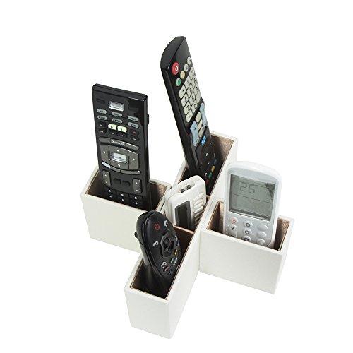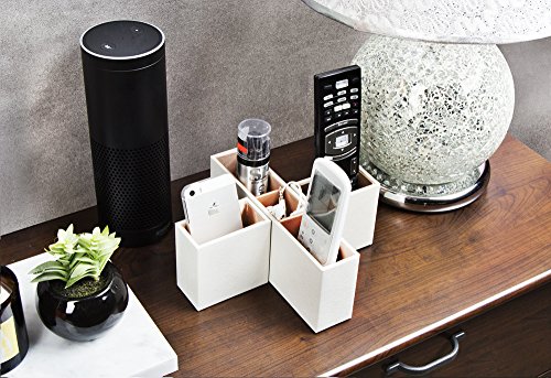 Jack Cube Leather Remote Control Organizer, Controller TV Guide, Media Storage Box with 5 Compartments(White, 8.54 x 8.54 x 3.35 inches) - MK210B