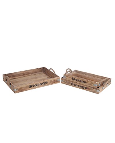 Privilege 88573 3 Piece Wooden Traditional Trays, Wood/Black, Medium