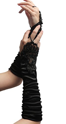iLoveCos Opera Gloves Long Glove 1920s Accessories Flapper Costume Finger-less Gloves for Women Roaring 20’s Accessories Classic Satin Elbow Length Gloves