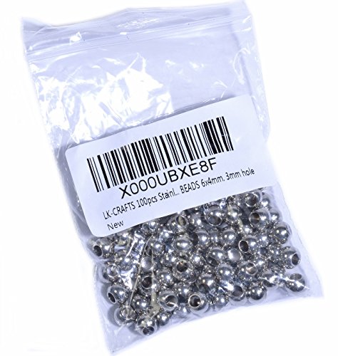 LK-CRAFTS 100pcs Stainless Steel RONDELLE BEADS 6x4 mm. 3mm Hole
