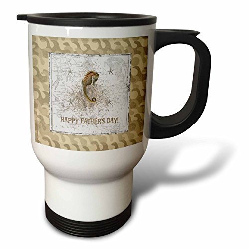 3dRose tm_182669_1 Beautiful Seahorse and Starfish on Old Map with Wave Frame Travel Mug, 14 oz, Stainless Steel, White