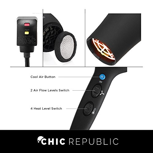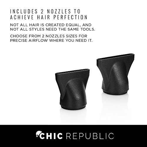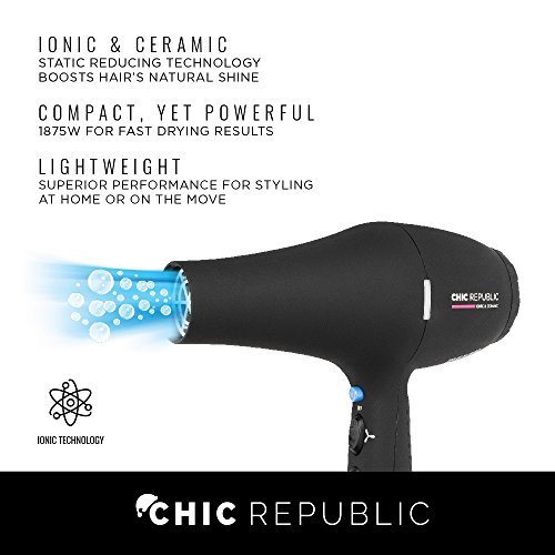The Best Ionic Ceramic Hair Dryer for Fast Drying Results This hairdryer has all of the features you need to create stunning results without static and with loads of natural shine. Unlike other hair dryers on the market, CHIC REPUBLIC's features a heat indicator light that allows you to see when the airflow is hot or cool. The blue light cool shot helps to seal your cuticles, giving your hair a finished look with loads of shine. Designed to deliver a fast and efficient dry with high velocity airflow that doesn't damage your hair, CHIC REPUBLIC's hair dryer is different from the rest. Using state of the art technology, it provides you with two unique diffuser nozzles so that you can style, straighten, and dry your hair to perfection. Its compact, lightweight design makes it the perfect hair dryer to take with you for travel or work, easily fitting into carry-on bags, suitcases, and even purses! Trusted by professionals, its soft touch body and sleek design make it comfortable to use too, even when drying long, thick hair. Other features include: - High performance motor for extreme velocity and maximum concentrated airflow - Static reducing technology that boosts hair's natural shine - 4 heat and 2 speed options to create the perfect dry - Temperature indicator light (blue or pink) offers turbo drying with hot or cool airflow - Cool shot button seals cuticles while drying for maximum shine - 3 meter cord for extra length that's convenient to use - Safety plug equipped with overheating protection to keep you and your hair dryer safe - Easy to follow instruction manual inside each box - Sleek black box looks professional and keeps hair dryer safe during shipping - Weighs less than one pound! - 125V, 50Hz, Power 1875W Experience a professional dry every time and click "Add to Cart" now! 0 |