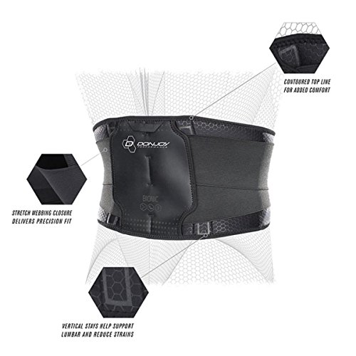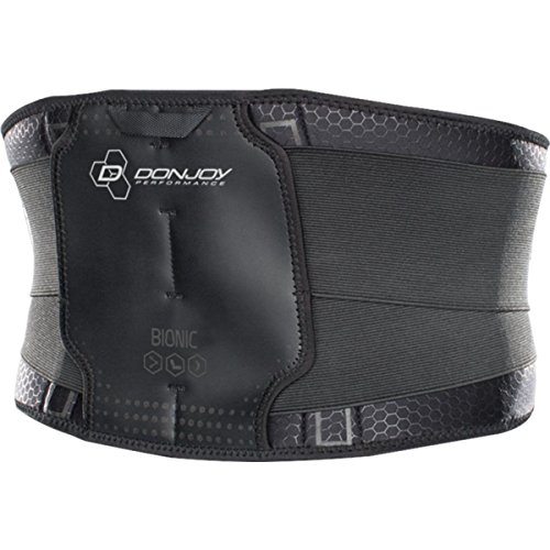 Studio : DJO Global Publisher : DJO Global Binding : Sports Product Description The DonJoy Performance Wrap-Around BIONIC Back Support Brace is intented for those suffering from lower back pain from trauma, strain or chronic pain. It features 4 robust vertical lumbar stays that improves posture, reduces strain, and helps to protect against pulls. The contoured top and bottom lines will comfortably fit all body types, providing an effective level of support. This back support has breathable mesh material for added ventilation and stretch webbing for controllable, graduated compression around the torso. It's equipped with Thermo-Plastic Rubber (TPR) pull tabs, allowing for easy adjustments. It's designed with reflective materials for enhanced visibility in low light conditions. 0