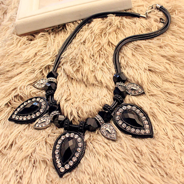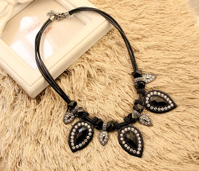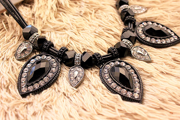 Black gold at the end, wax cord with chain. Resin diamond crystal.