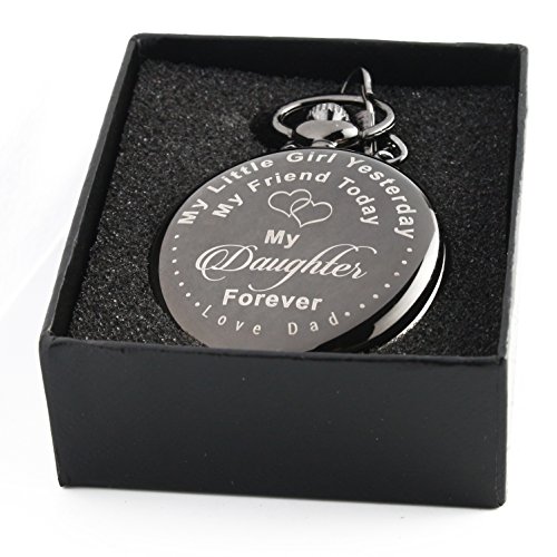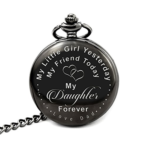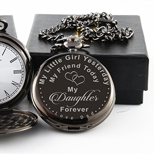 Laser engraved Pocket watch gift idea features the words " "My Little Girl Yesterday, My Friend Today, My Daughter Forever , Love Dad"