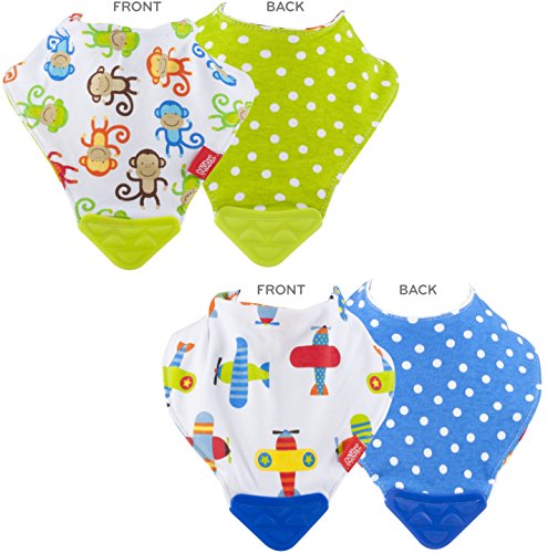 Nuby 2 Piece Bibs with Dribble Catcher and Teething Corner, Blue and Green