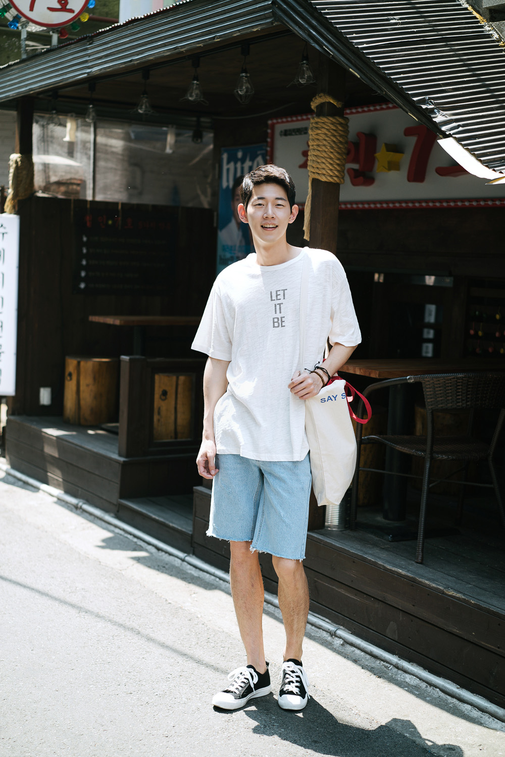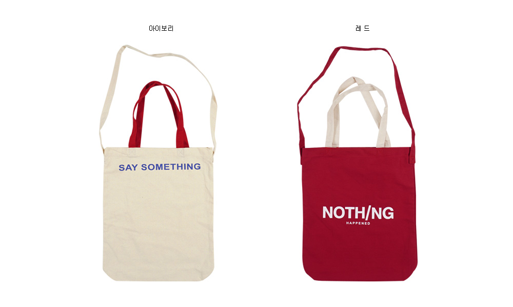 깔끔한 컬러감에 토트끈은 배색으로 포인트를 주었으며 'SOMETHING' 나염으로 위트있는 디자인을 완성한 아이템이다.