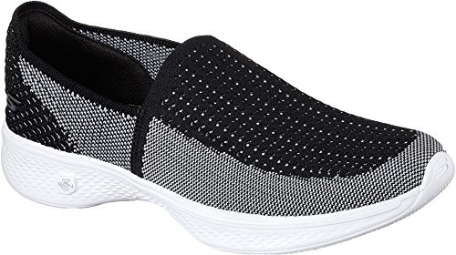 Binding : Apparel Product Description Womens Skechers GO Walk 4 - Ravish :: Look good and feel great all day long in the new GO Walk 4 featuring innovative and highly responsive 5GEN; midsole cushioning. High energy returning properties keep every step charged with an endless supply of light, fast energy. This sleek and stylish update features Goga Pillars; and a new Goga Max; footbed for ultimate comfort. Youll want to slip this shoe on and the Quick-Fit Portal makes doing so all the much easier. This lightweight and comfortable shoe is perfect for walking, post exercise recovery and travel. 0