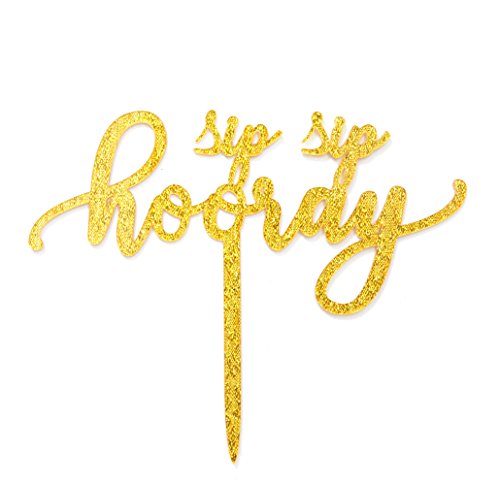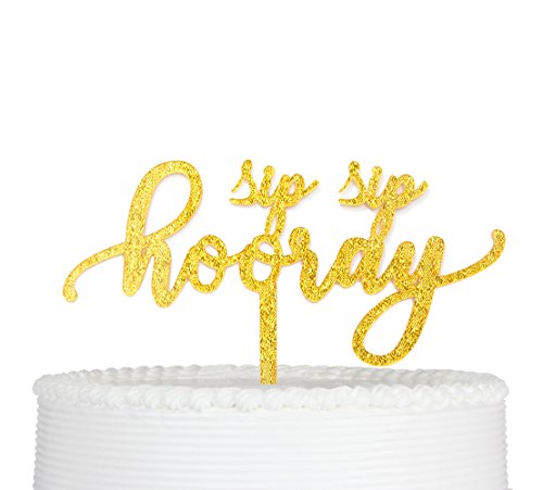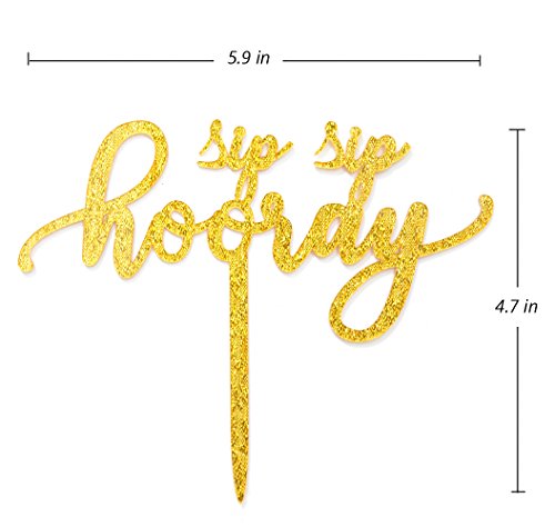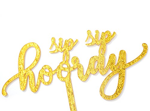 Qttier(TM) Sip Sip Hooray Cake Topper, Premium Quality Gold Glitter Acrylic Elk Birthday, Bachelorette Party Holidays Decoration Supplies (Gold)