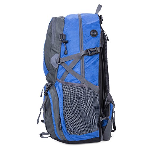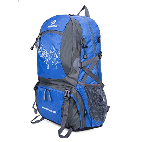 -. Feature : Durable for long-time use: Our travel backpack is made of high quality water resistant and tear resistant material.High intensity nylon material makes it more convenient to carry more load on your trips.Durable 2-way Abrasion Resistant SBS Metal Zipper across the backpack.Earphone hole,From the backpack inscribed the headset line,listen to music while traveling. / Comfortable to wear: Air cushion shoulder straps help relieve your shoulder stress.Adjustable shoulder length,free to adjust to ideal length.3D honeycomb breathable mesh and high elasticity noodles back cushion,relax the back pressure and impact force,promote the circulation of air,breathable and comfortable. / Mountaineering (2.47LB) and roomy (50L)Fit for iPad,14"laptop. / Compact: Product Dimensions: Approx. 20H x 12W x 7D inches (50.8H x 30.48W x 17.78D cm),Three zippered compartments.Main pocket is large enough to carry what you need.Outer smaller pocket doubles as the storage pouch great for quick access such as magazines,guide brochure and camera.Inner zippered pocket which is perfect place for valuables such as cash,credit cards and passport.Two large side mesh pockets for water bottles or umbrella. / Perfect for both daily and outdoor activities.Use it as a carry on for your excess baggage,perfect for day trips,vacation, travel,day hikes,school,camping and shopping.