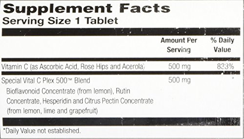 ReleaseDate : 2017-03-15 Studio : Solaray Publisher : Solaray Binding : Health and Beauty Product Description Solaray Vital C Plex 500 features 500 mg of Ascorbic Acid and 500 mg of Citrus Concentrates with Natural Vitamin C from Rose Hips and Acerola.? Solaray guarantees that no ingredients other than those listed on the label have been added to this product. 0