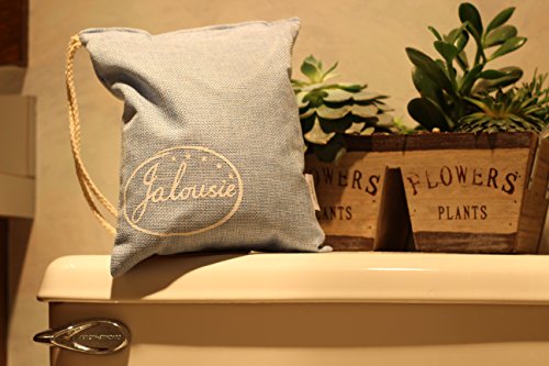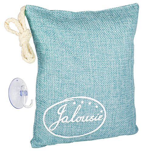 500g Jalousie Air Purifying Activated Bamboo Charcoal Bag Odor Removal for Kitchen Pet Car Closet Basement Prevent Mold Mildew Dehumidify- Hook Included for Hanging (Blue)