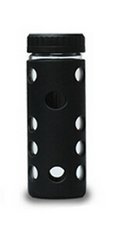 -. Title : Exhilarate Glass Water Bottle, 15.2 oz. Silicone Sleeve, Black
