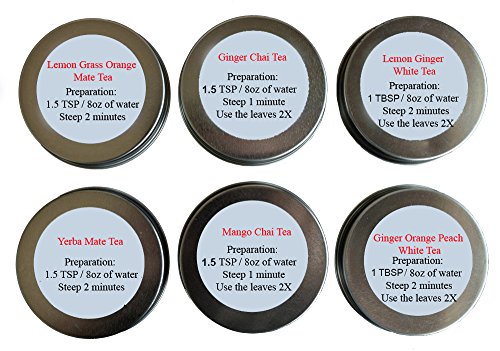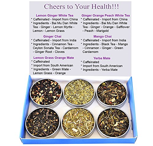 -. Feature : Tea Sampler of Mate - Chai - White Teas / Premium Loose Leaf Tea Included - Yerba Mate Tea - Lemon Grass Orange Mate Tea - Mango Chai Tea - Ginger Chai Tea - Lemon Ginger White Tea - Ginger Orange Peach White Tea / Tea Gift Box - Find Your Favorite Teas / Great Variety Contains For Everyone To Share - Enjoy / Caffeinated - Import from China