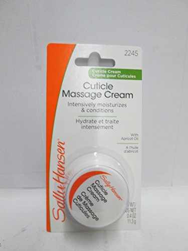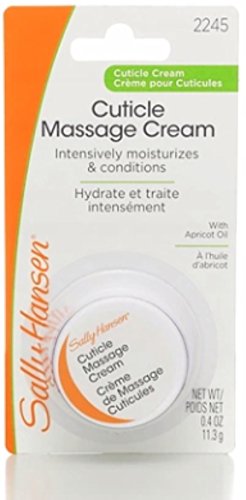 Sally Hansen cuticle massage cream is an intensive conditioning treatment for rough, ragged cuticles and hangnails. Intensive treatment moisturizes and conditions. Rich, emollient formula absorbs quickly to intensely moisturize rough, ragged cuticles. Soothes hangnails and torn cuticles. Massage cuticles daily with cuticle massage cream for maximum benefits.Feature