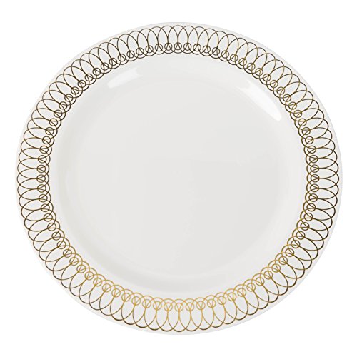 7.5in. Gold Ovals Design Premium Plastic Wedding Plates (40 Pack) China-Like