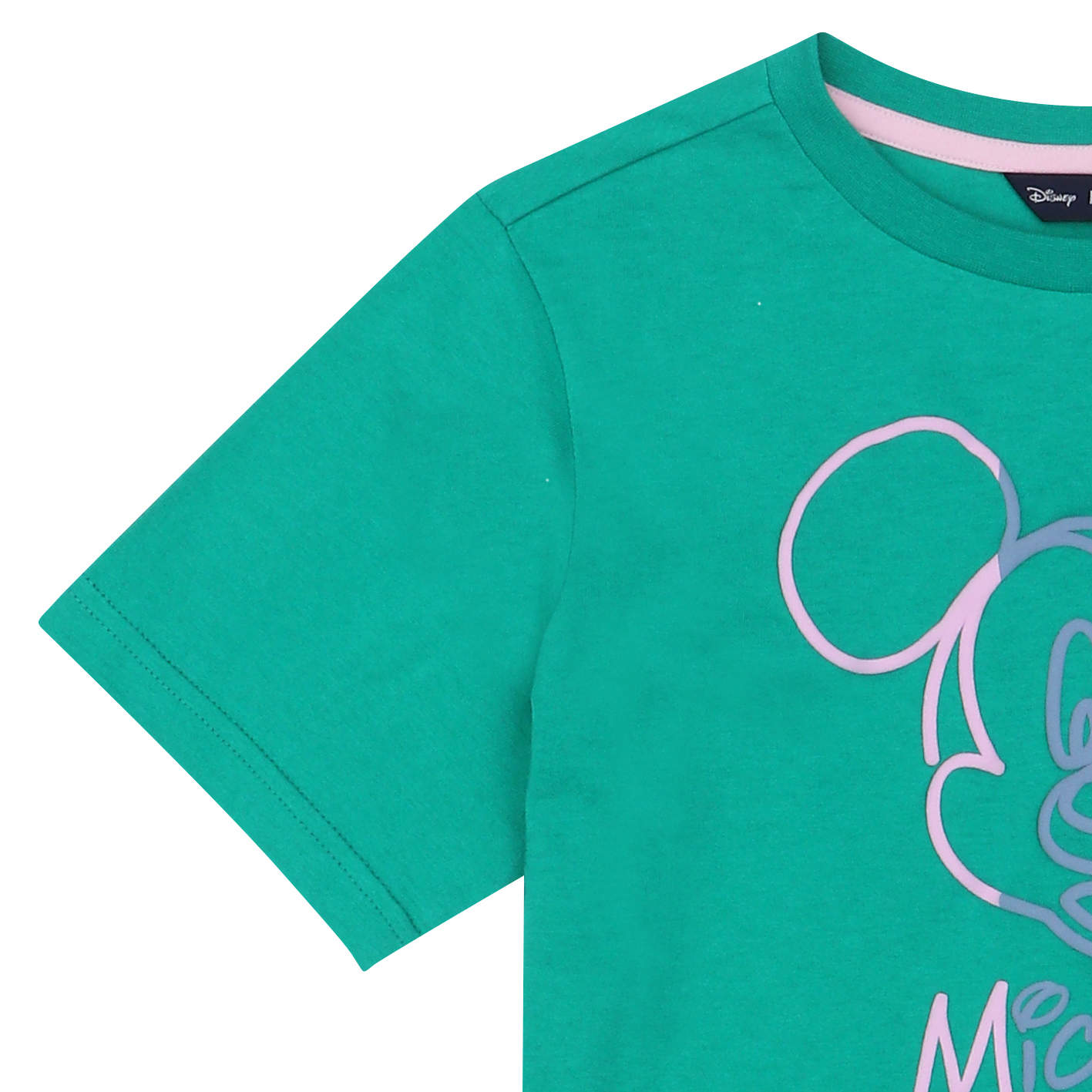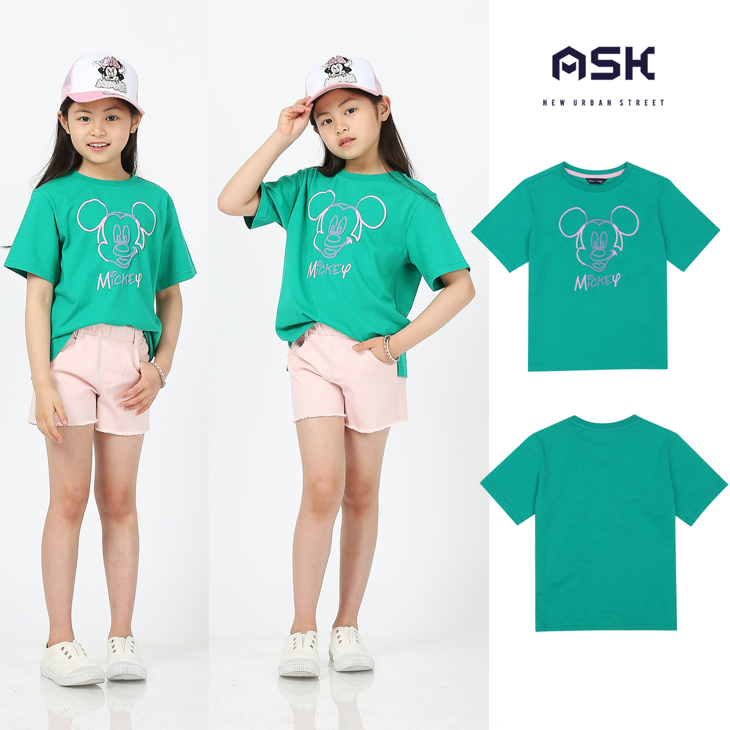 30수 싱글 슬럽 소재의 기본 티셔츠. 디즈니 미키 아트웍을 포인트로 준 아이템으로 유니로 판매하기 좋음.