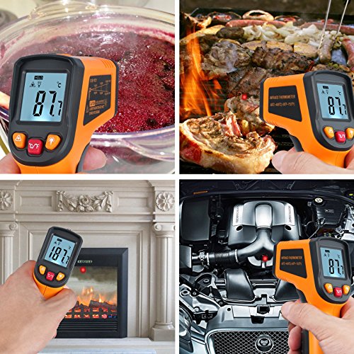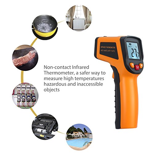 【Proster Digital Infrared Thermometer】Infrared Technology makes this thermometer handy to use when cooking and barbequing, performing auto maintenance, doing home repairs, and a host of other tasks; Measure all the from -58℉~752℉ / -50℃ ~ 400℃