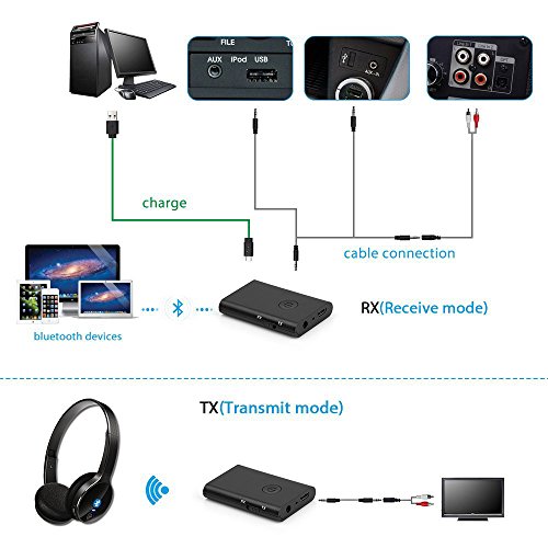 Bluetooth-everywhere for all 3.5mm media devices, In Transmitter mode (TX), turn a non-Bluetooth TV, PC, CD player, iPod, MP3 / MP4 into a Bluetooth transmitter while pairing with Bluetooth stereo. Receiver mode (RX): Ideal for home or vehicle music streaming sound system.